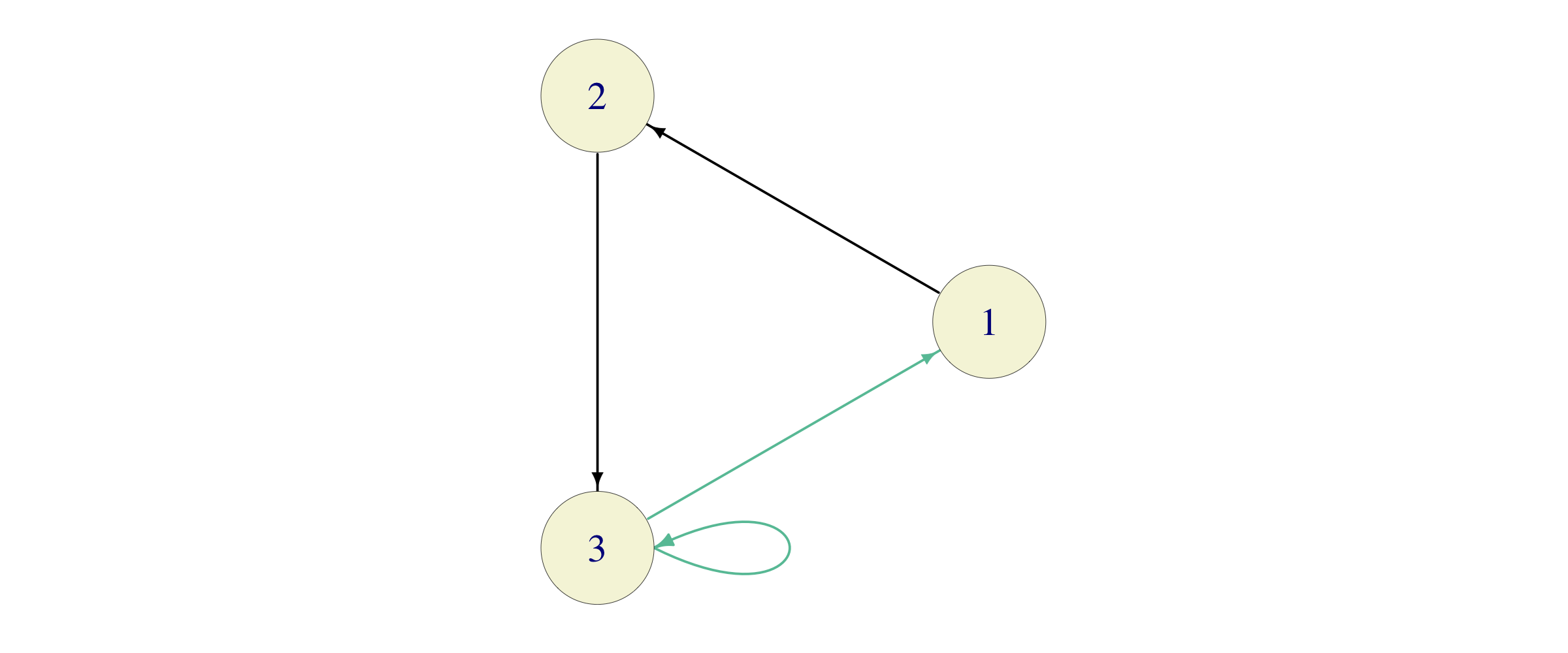 the situation changes drastically: \[\begin{align} R(1) & =\{ 3,4,5,6, \dots \},\\ R(2) & =\{ 3,4,5,6, \dots \},\\ R(3) & =\{ 1,2,3,4,5,6, \dots \}, \end{align}\] so that \(d(i)=1\) for \(i\in\{1,2,3\}\).