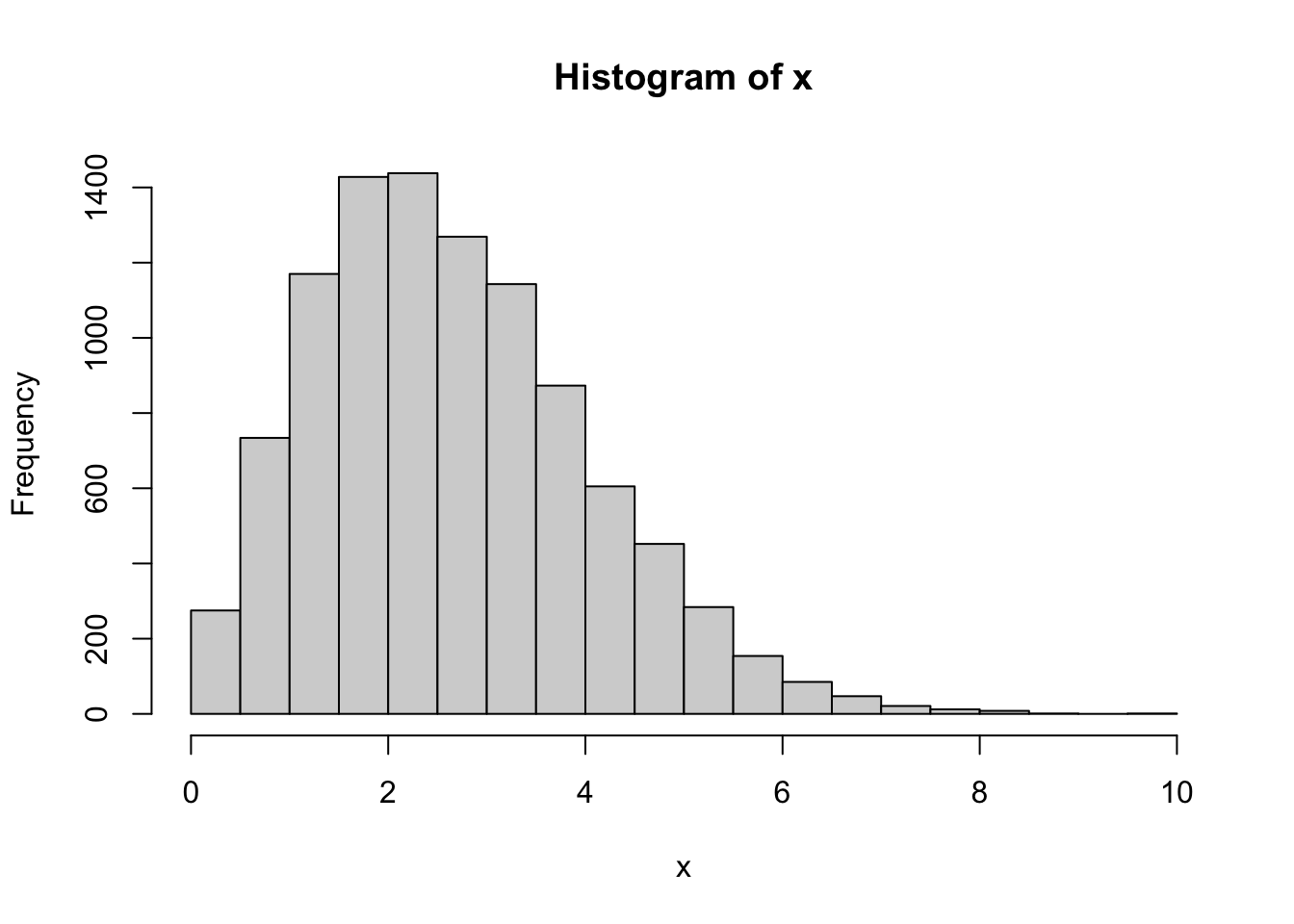 ## [39] 0 0 0 1 2 0 1 1 1 0 1 0Comments (R): R makes it very easy to simulate draws from a large class of named