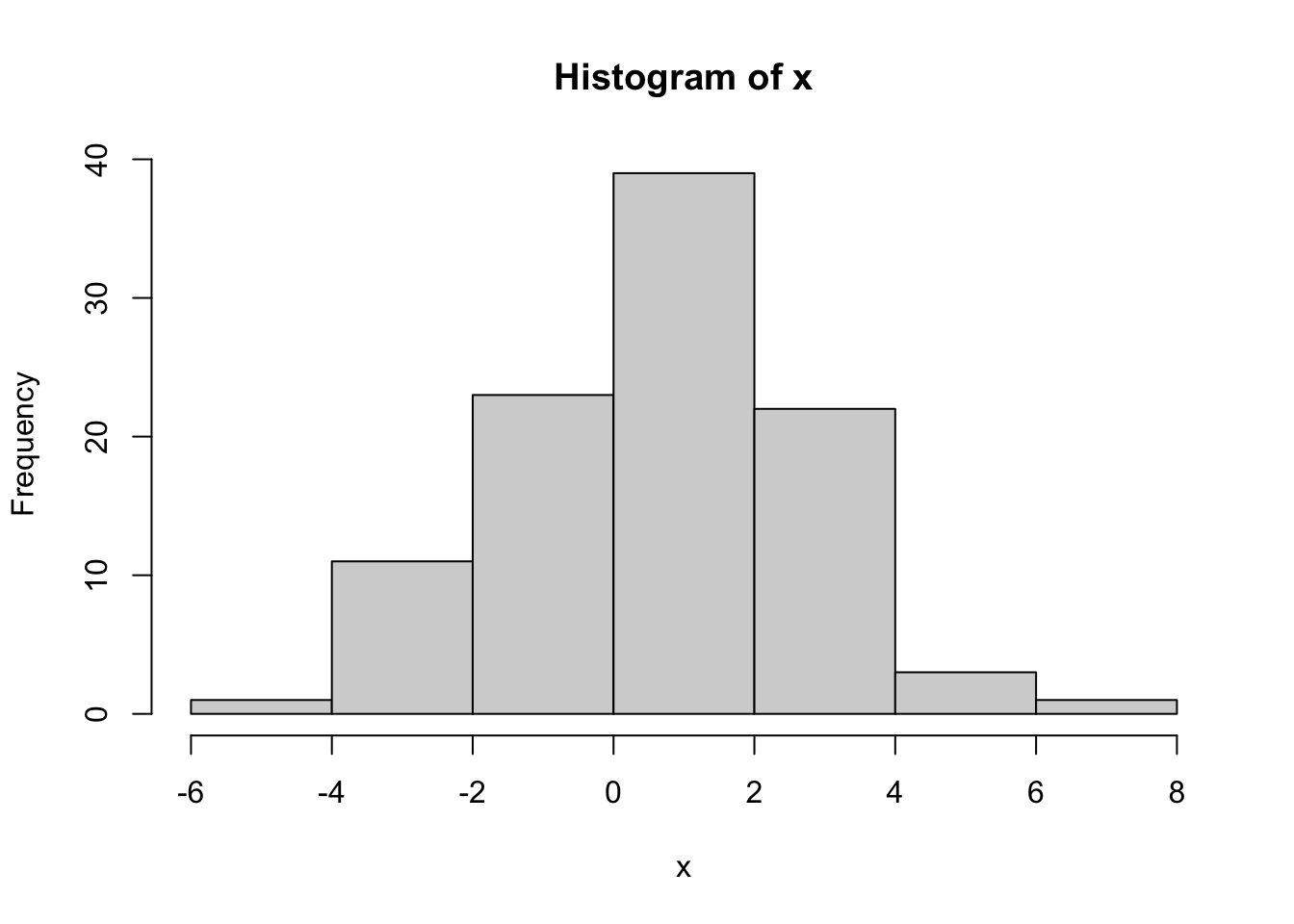 ## [1] -2.2897073 -1.5631031 0.4933058 1.5066942 4.2897073Comments (R): The function we used is qnorm, with the prefix q which computes the